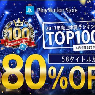 PSストアでの2017年売上本数ランキングTOP100タイトルから58タイトルが最大で80%OFFとなるセールが開催中です。