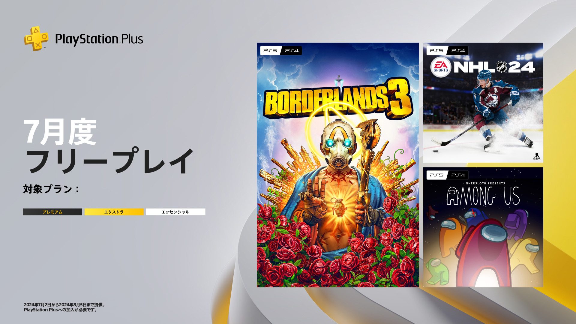 PlayStation®Plus 2024年7月提供コンテンツ情報! 7月2日(火)より、フリープレイに『ボーダーランズ3』『NHL 24』『Among Us』の3タイトルが登場!
