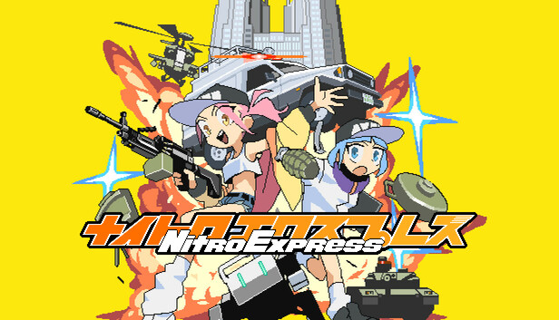 『Nitro Express』は東京特別行政区・内瀞市(ないとろし)を舞台に、ピクセルアート・スタイルの美少女キャラクターが 360° フリーエイムでアサルト・ウェポンを撃ちまくる、2D サイドビュー・ガンアクションゲームです。