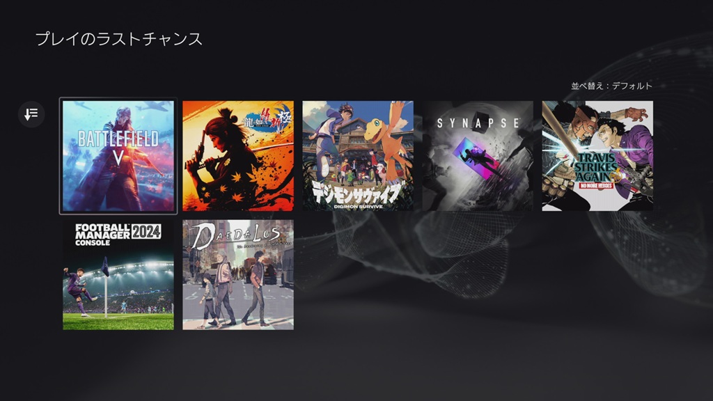 「Battlefield V」「Football Manager 2024 Console」は変則日程でしたが、他はまぁ想定通りでしたね