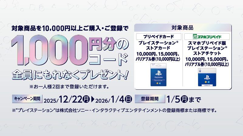 ローソン・セブンイレブンにてPSストアカード/チケット購入・応募500~1,000円分のコードがもれなくもらえるキャンペーンが本日(12月22日)よりスタートしました。