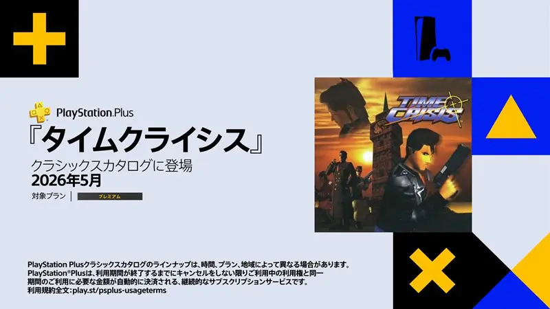 1997年にPS1でリリースされたガンシューティング「タイムクライシス」が2026年5月のクラシックスカタログに登場。