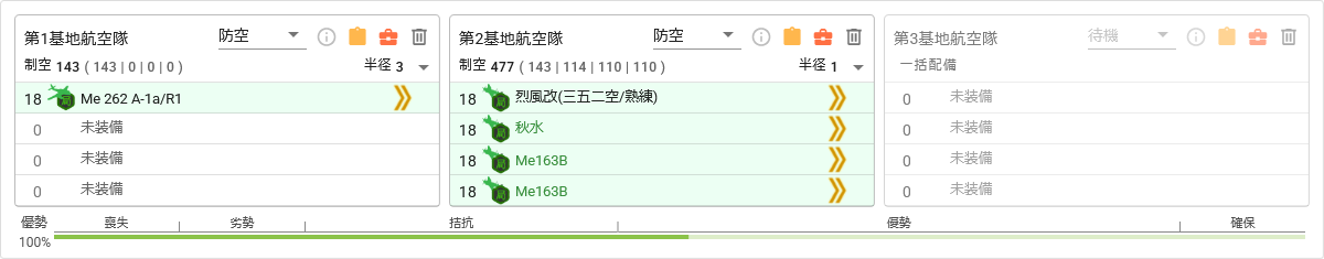 - 敵空襲部隊は制空値かなり高めなので注意(強編制だと1部隊での優勢は難しい)