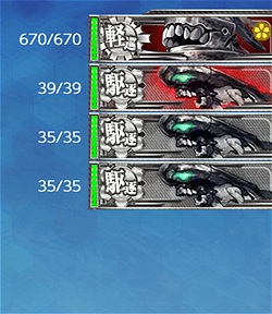 軽巡1・駆逐3・戦艦1・軽空母1・正規空母1 ※制空値が足りる場合は軽空母→重巡級や駆逐に交換で道中1戦短縮