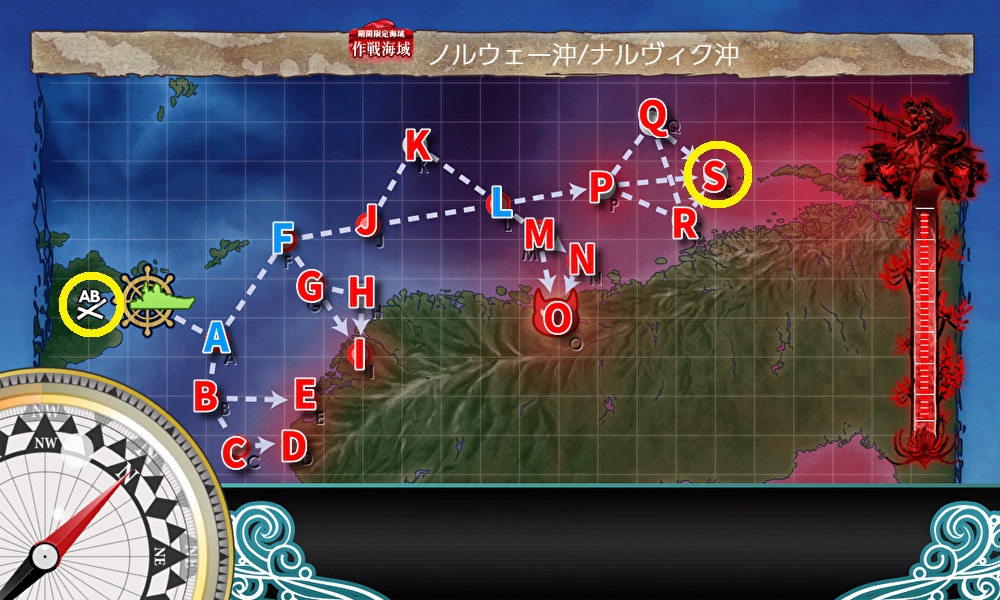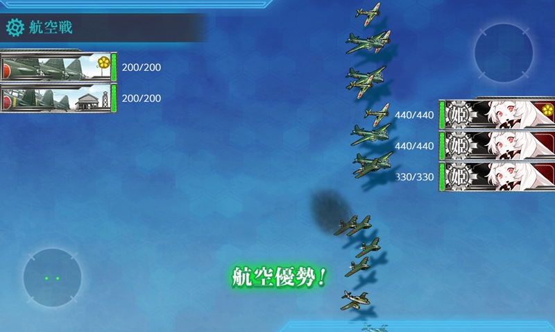 - 装備などの関係でSマス制空優勢が難しい場合、正規空母1・軽空母1の形にしてRマス(空襲)が増えるルートで攻略しましょう