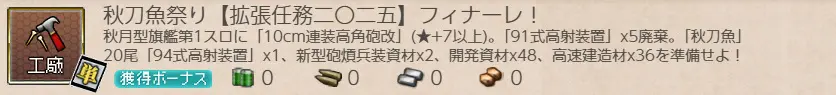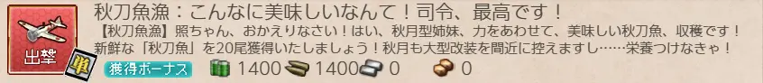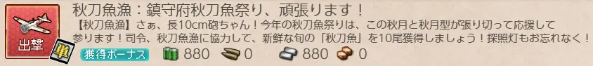 | 秋刀魚祭り【拡張任務】秋刀魚で戦闘糧食! | |||