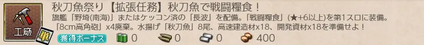 工廠任務『秋刀魚祭り【拡張任務】秋刀魚で戦闘糧食!』