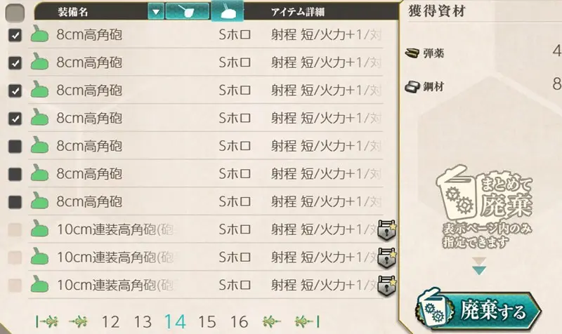 - 改修に必要な「10cm連装高角砲」は秘書艦空母で「燃料10/弾薬10/鋼材30/ボーキサイト10」などで開発