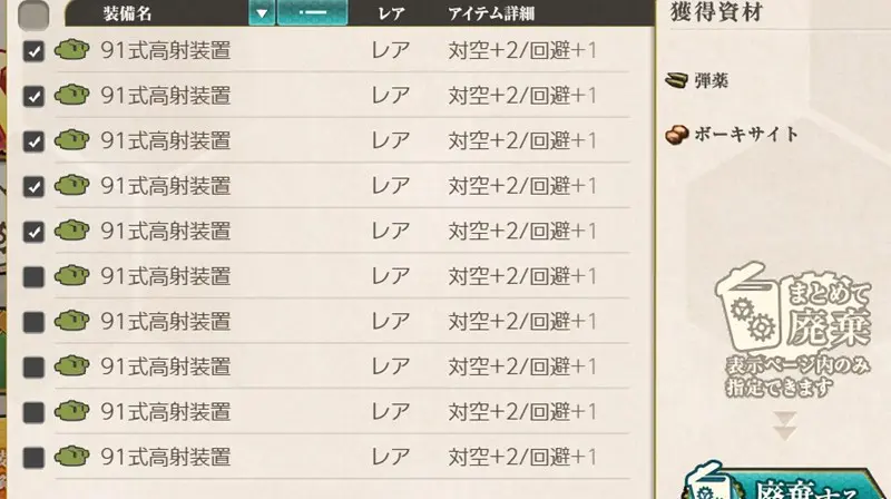 - 秋刀魚20尾、「94式高射装置」、新型砲熕兵装資材×2、開発資材×48、高速建造材×36を準備するとクリア
