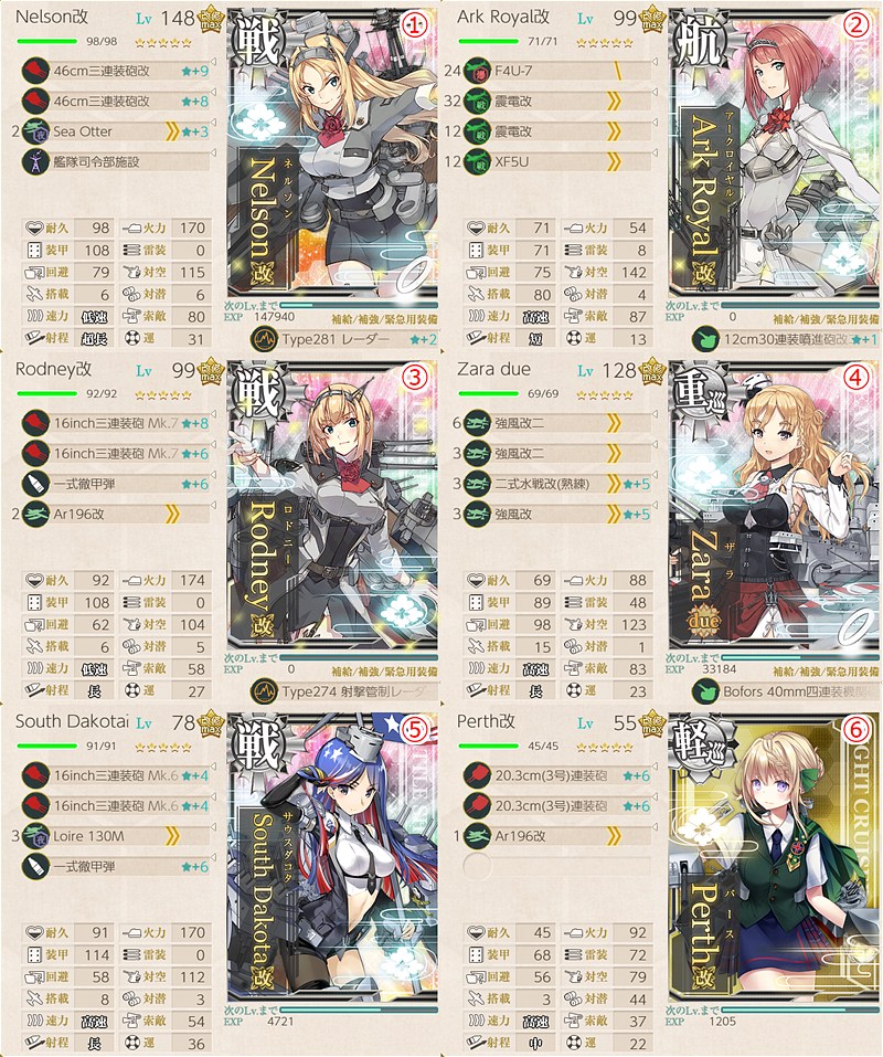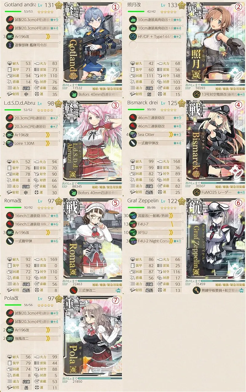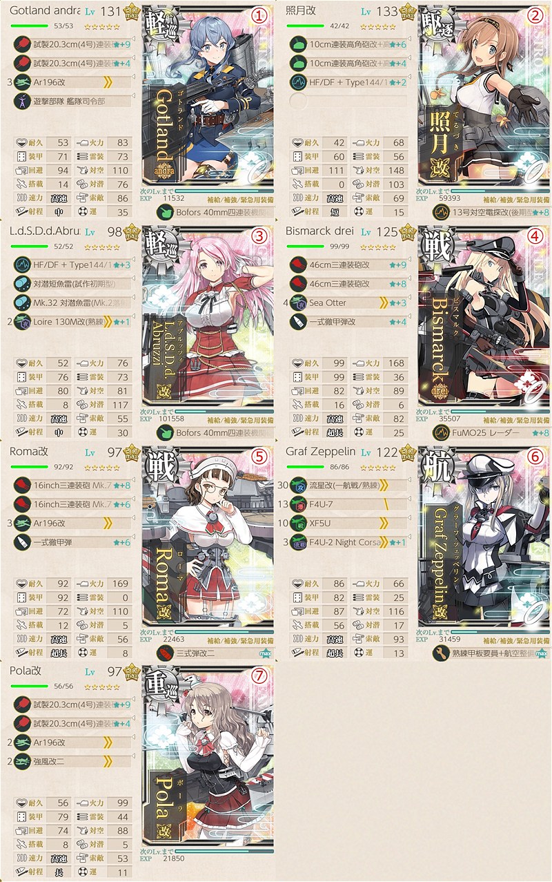戦艦2・空母1・重巡級1・軽巡2・駆逐1 ※高速統一