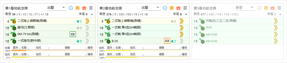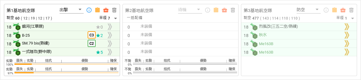 | 制空均衡にする場合は甲180/乙150/丙140/丁75 | |||