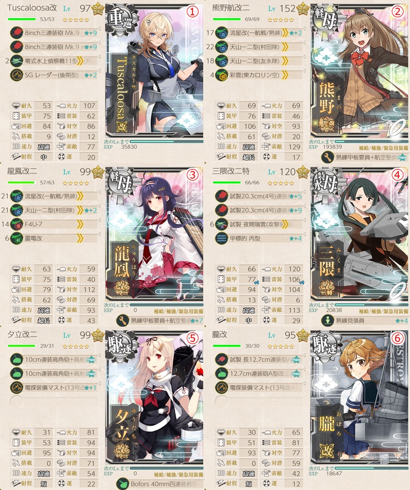 (朧+夕立+野分+早波+熊野丸+迅鯨改+Tuscaloosa)3・他自由