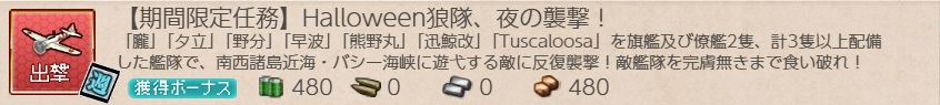 【2025艦隊重南瓜祭り任務群】艦これ・任務『【期間限定任務】Halloween狼隊、夜の襲撃!』攻略(ウィークリー)