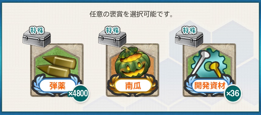 - 選択報酬2『弾薬×4,800 / 南瓜 / 開発資材×36』