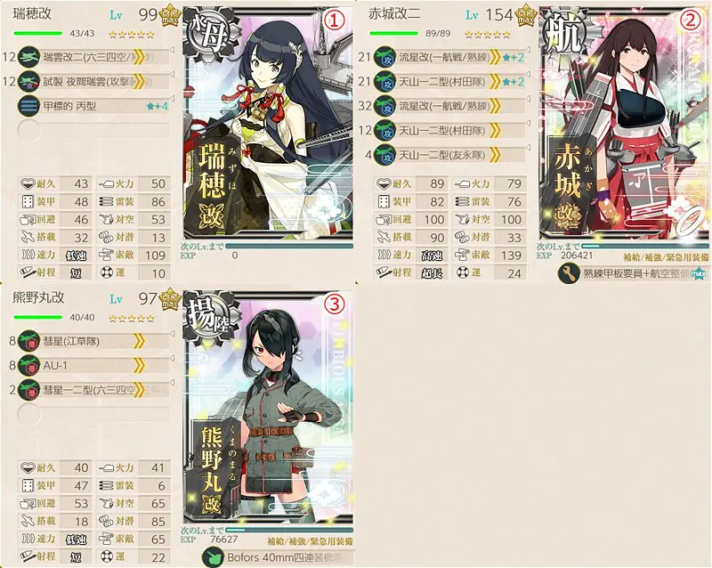 - 補給艦1以上の時、潜水艦1以上を満たさないとC→Bと逸れてボス到達できません(なので基本的には補給艦は非採用の形が良いです)