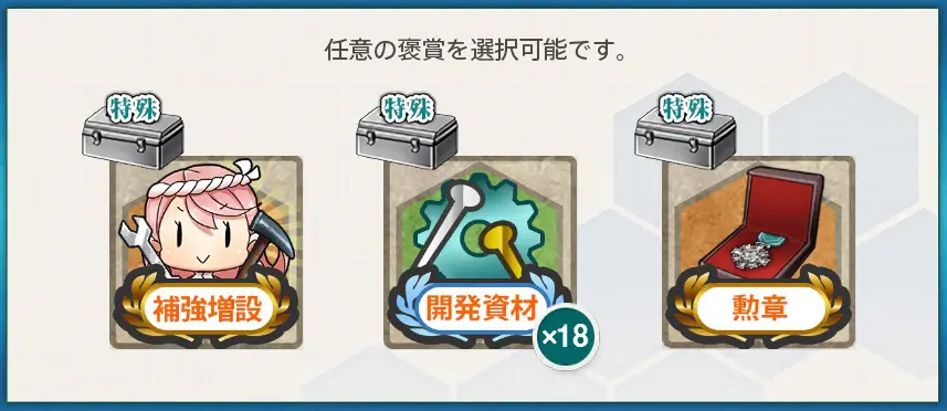 - 選択報酬2『補強増設 / 開発資材×18 / 勲章』