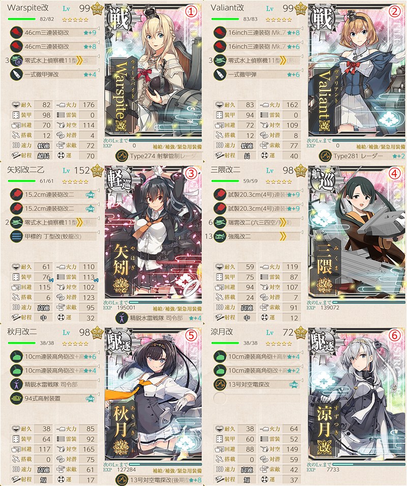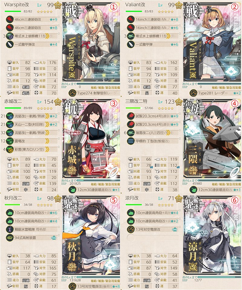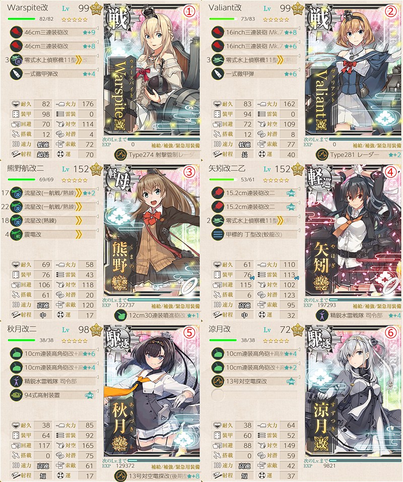 戦艦2・正規空母1・水母1・駆逐2