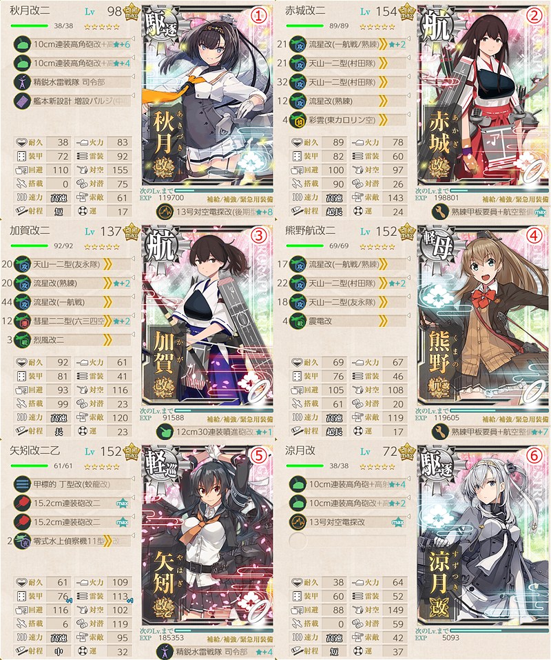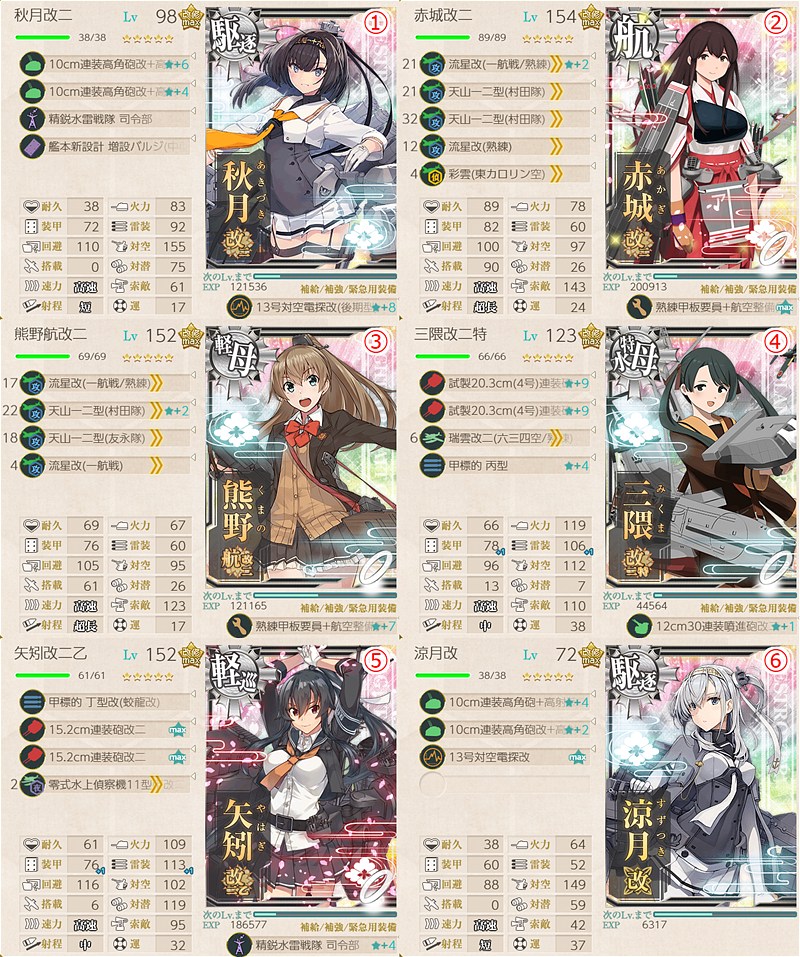 秋月改二(旗艦)・正規空母1・軽空母1・水母1・軽巡1・駆逐1