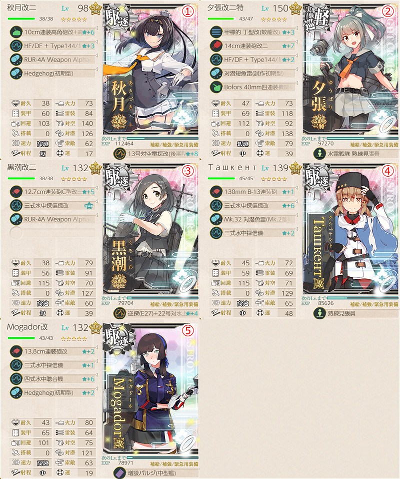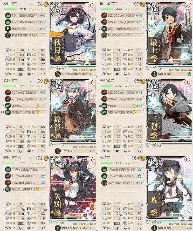 - 2戦目が対水雷戦隊なので、砲戦火力も意識