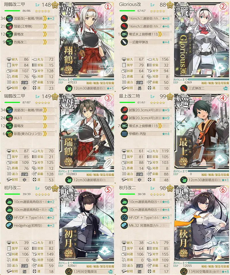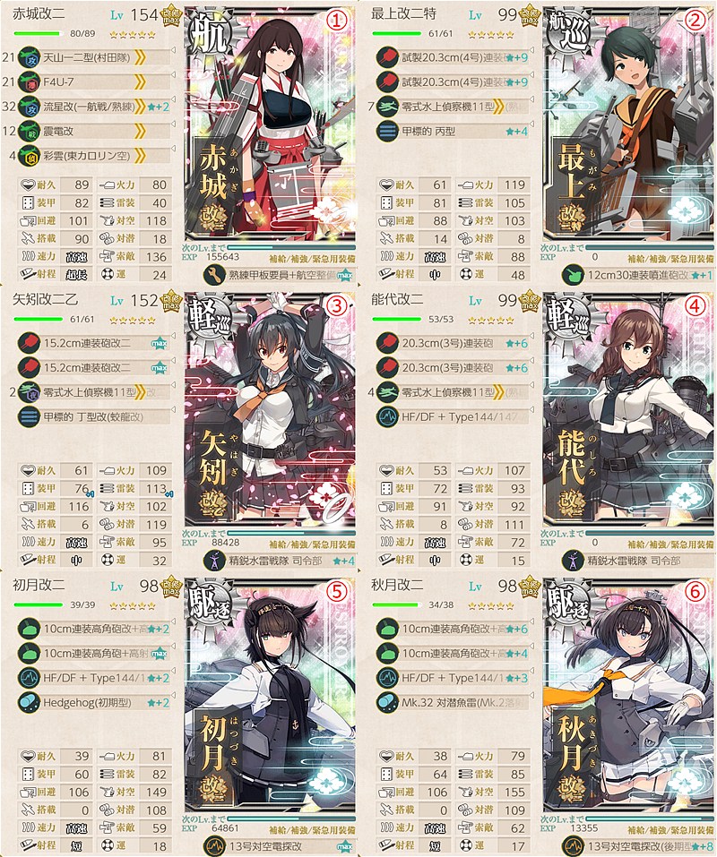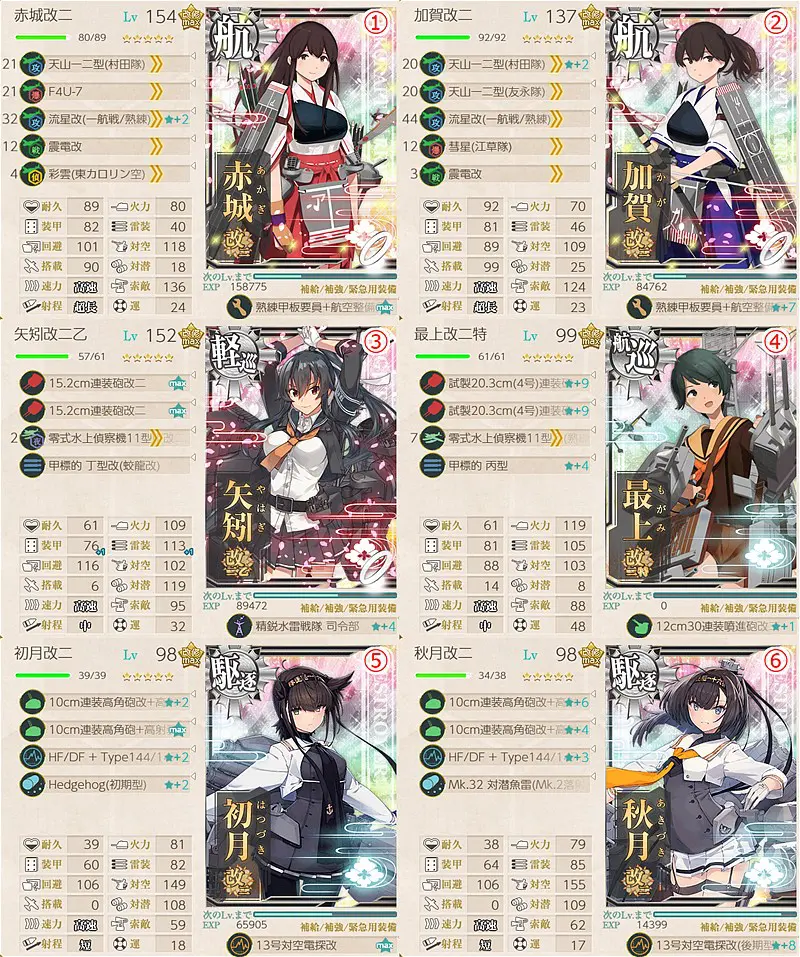 • 道中で潜水艦が出現するので可能な範囲で対潜装備を(強くないので無視でも可)