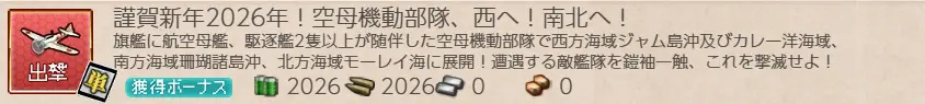 艦これ・任務『謹賀新年2026年!空母機動部隊、西へ!南北へ!』攻略