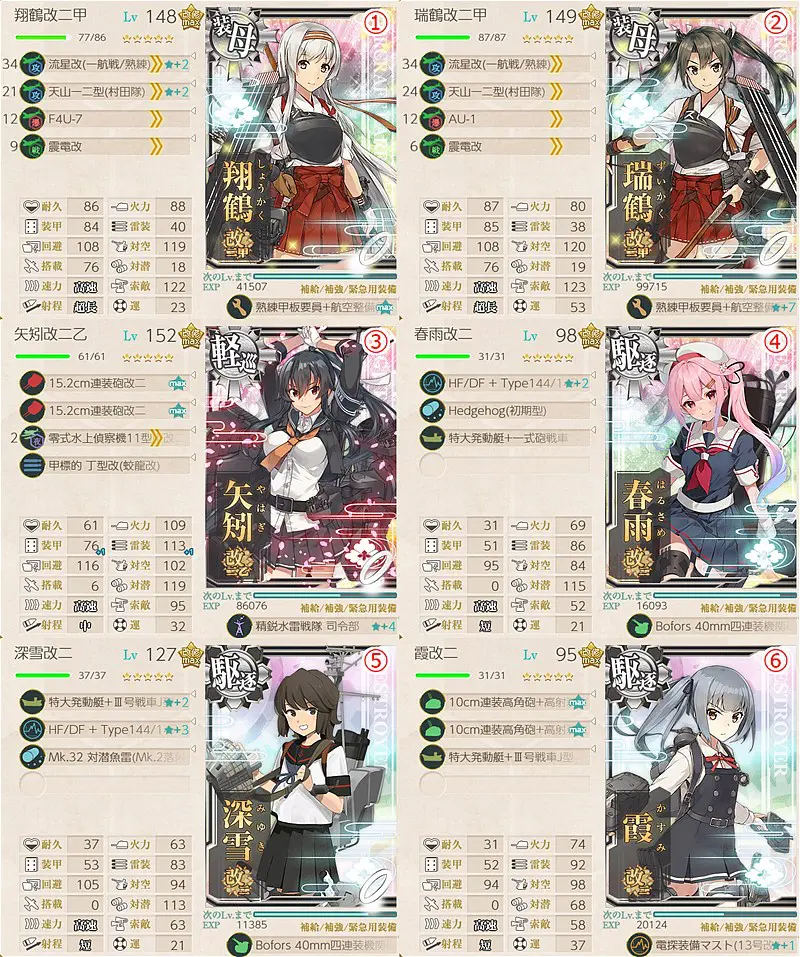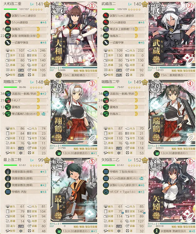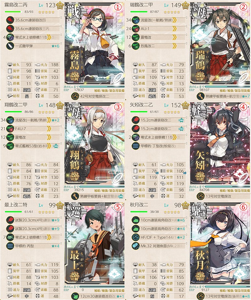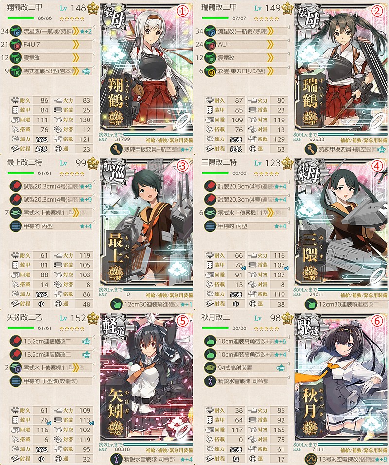 - 道中潜水マスがあるので、可能な範囲で対潜装備を(強くはないので最低限でOK)