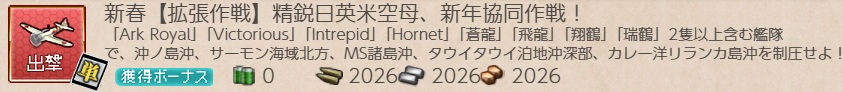 艦これ・任務『新春【拡張作戦】精鋭日英米空母、新年協同作戦!』攻略
