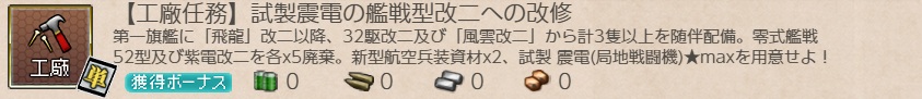 | 【工廠任務】試製震電の艦戦型改二への改修 | |||
