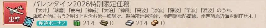 (期間限定ウィークリー)艦これ・任務『バレンタイン2026特別限定任務』攻略