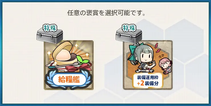 - 選択報酬2『給糧艦「伊良湖」 / 装備運用枠+2装備分』