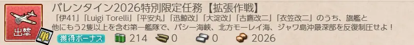 (期間限定)艦これ・任務『バレンタイン2026特別限定任務【拡張作戦】』攻略