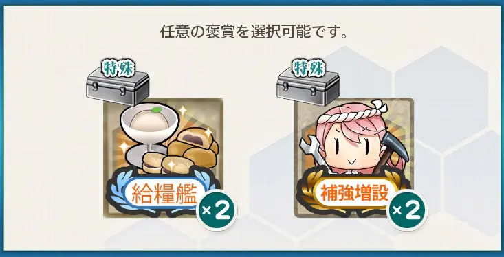 - 選択報酬1『給糧艦「間宮」×2 / 補強増設×2』