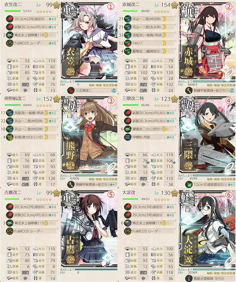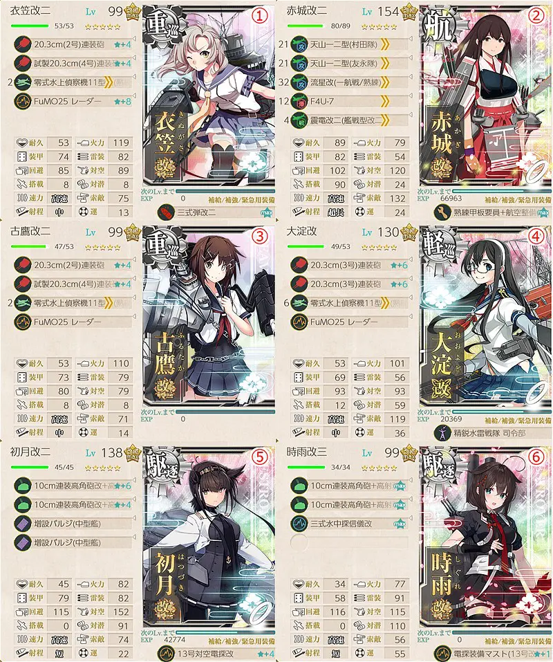 「大淀改」「古鷹改二」「衣笠改二」を採用でいずれかを旗艦に配置