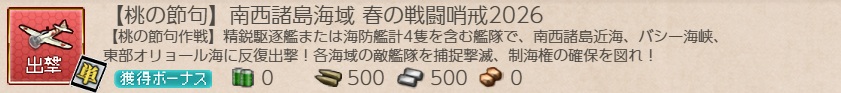 (期間限定)艦これ・任務『【桃の節句】南西諸島海域 春の戦闘哨戒2026』攻略