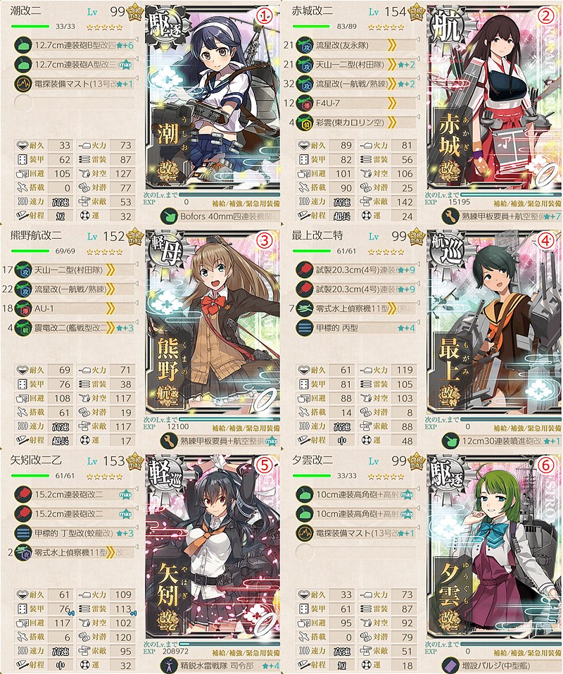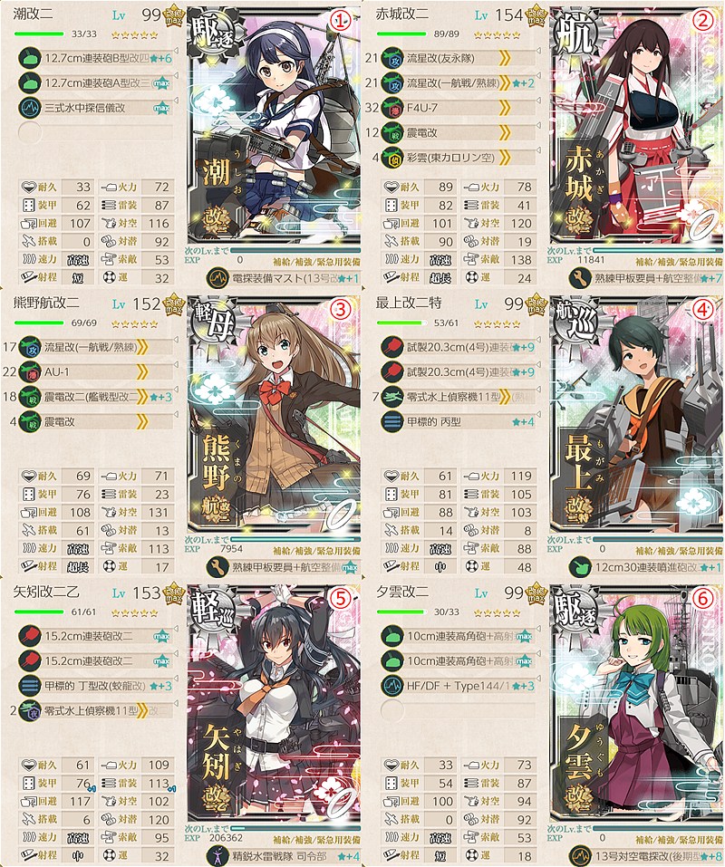 駆逐3(旗艦)・正規空母1・軽空母1・軽巡1 ※高速統一