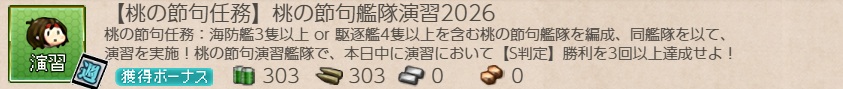 | 【桃の節句任務】桃の節句艦隊演習2026 | |||