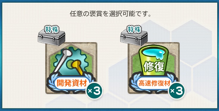 - 選択報酬『開発資材×3 / 高速修復材×3』