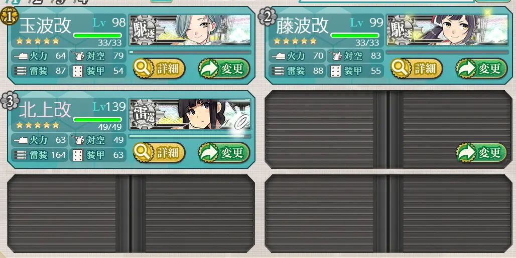 1:第一艦隊旗艦に玉波、随伴に藤波、北上を編成