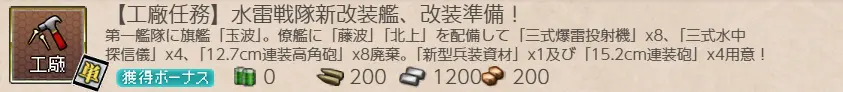 艦これ・任務『【工廠任務】水雷戦隊新改装艦、改装準備!』攻略