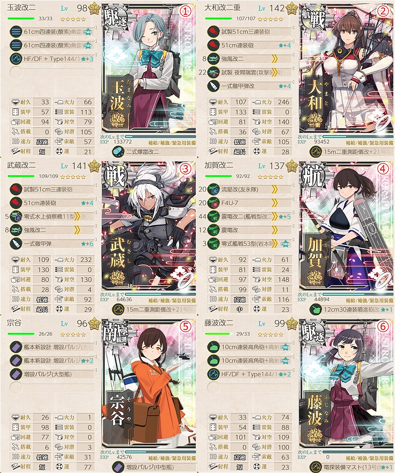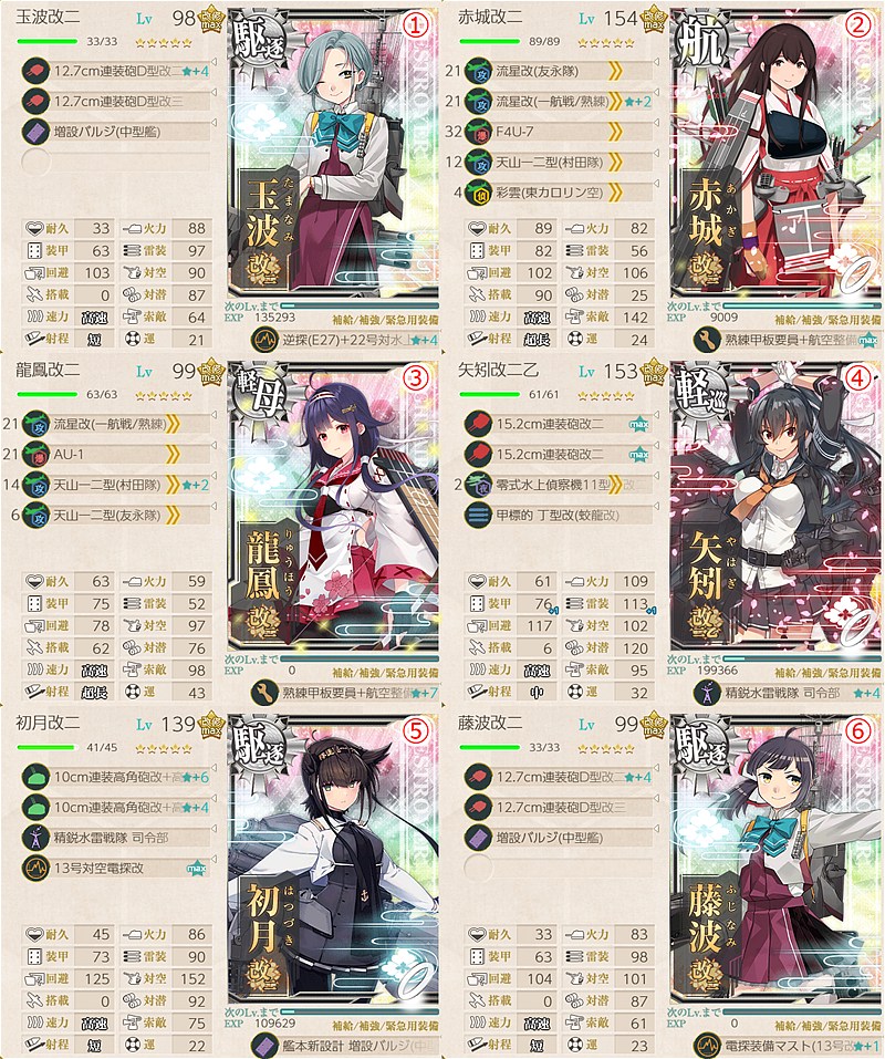 • 制空を取らない場合は「玉波改二(旗艦)・藤波・戦艦2・航巡1・軽巡1」の形で