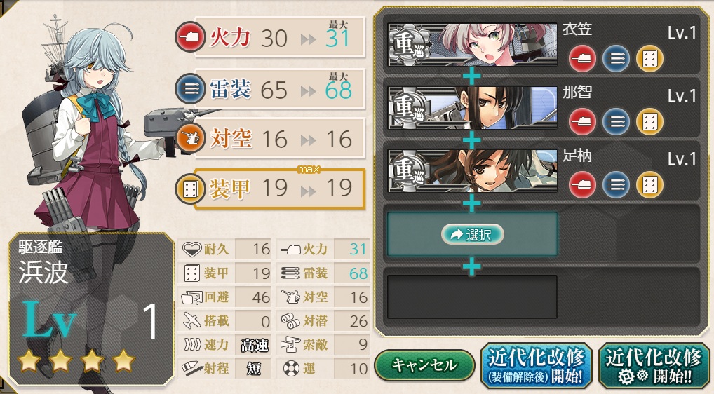 夕雲型駆逐艦に対して「重巡洋艦×3」を投入した近代化改修を3回成功させます