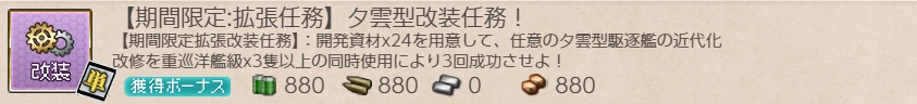 | 【期間限定:拡張任務】夕雲型改装任務! | |||