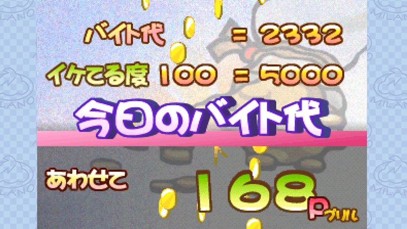 - ピザの配達や患者の治療、ミルク絞りなど8つのアクション性のあるミニゲームをプレイしよう。ミラノの「ちしき」を上げるとアルバイトの難易度と給料が上がっていく