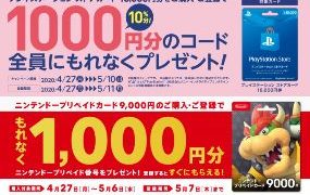 雑記 ローソン・セブンイレブンで指定額の「PSストアカード」「ニンテンドープリペイドカード」購入・登録で最大1,000円分のコードが貰えるキャンペーンが開催中【ニンテンドー:5/6 PS:5/10まで 】