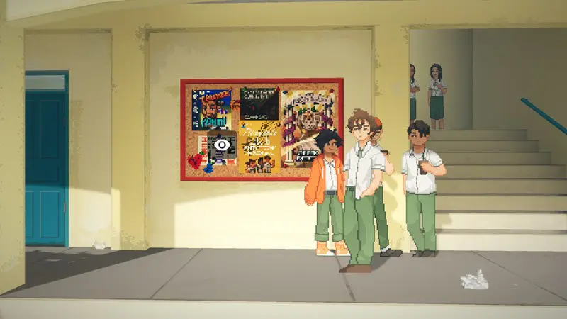 - 掲示板は全5か所、すべての学校の廊下や教室にある。最後の5番目は途中で怒られて取れなくなるが、その後のイベントで屋上に行った後に再び調べると取れるようになる