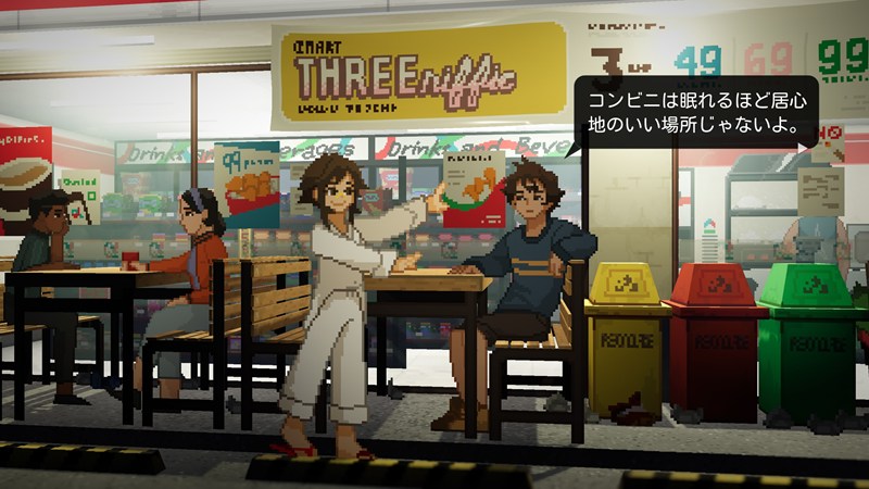 古着屋でのイベント後、しばらく右に行くとパン屋に入るイベントがあり、そこでクッキーを購入するイベントがあるので真ん中のハート型クッキーを選ぶとトロフィー「愛ある少年」、右の絵文字型クッキーを選ぶとトロフィー「コメディキング」を獲得できます。