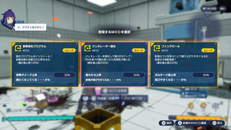 ちなみに100階クリア後に帰還した際に「葉加瀬博士」がムゲンモード限定のプレイヤーキャラとしてアンロックされます