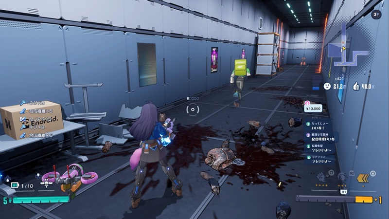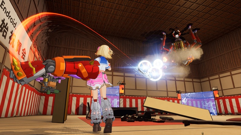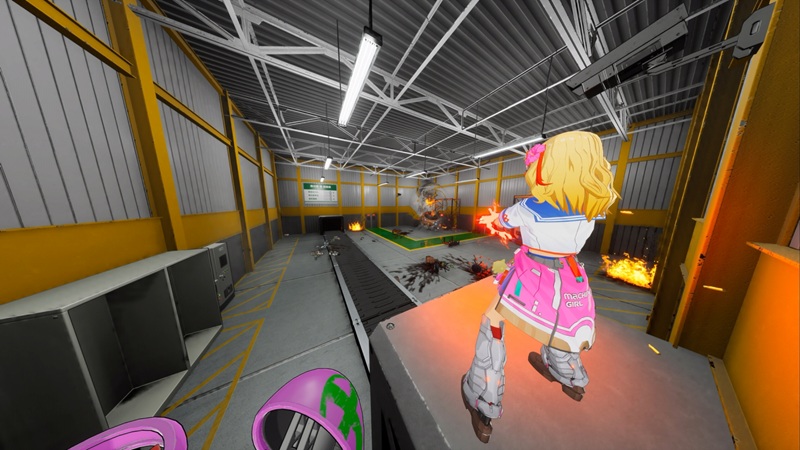 - マシンガールである主人公たちは腕をガトリング砲やチェーンソー、ブレードやショットガンといった兵器に変えて戦う。ゲーム開始時に選択した初期装備に加えて、ビルにあるアイテムボックスからも武器が手に入るので、それらを状況に応じて使い分けよう