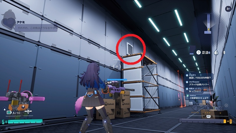 ダクトを抜けると次の階への非常階段の近くに移動することが出来るので、ムゲンモードなどでスムーズに次の階に行きたい場合は積極的に活用しましょう。