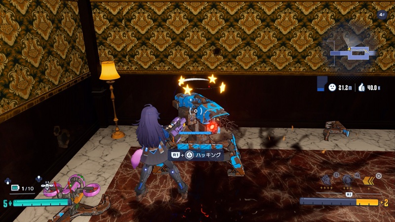 設置された砲台型の敵や黒服など、こちらへの殺意が高めの敵がいる部屋ではオーバークロックを使用して急接近し射撃武器を当てるなどして速攻で撃破するようにしましょう。